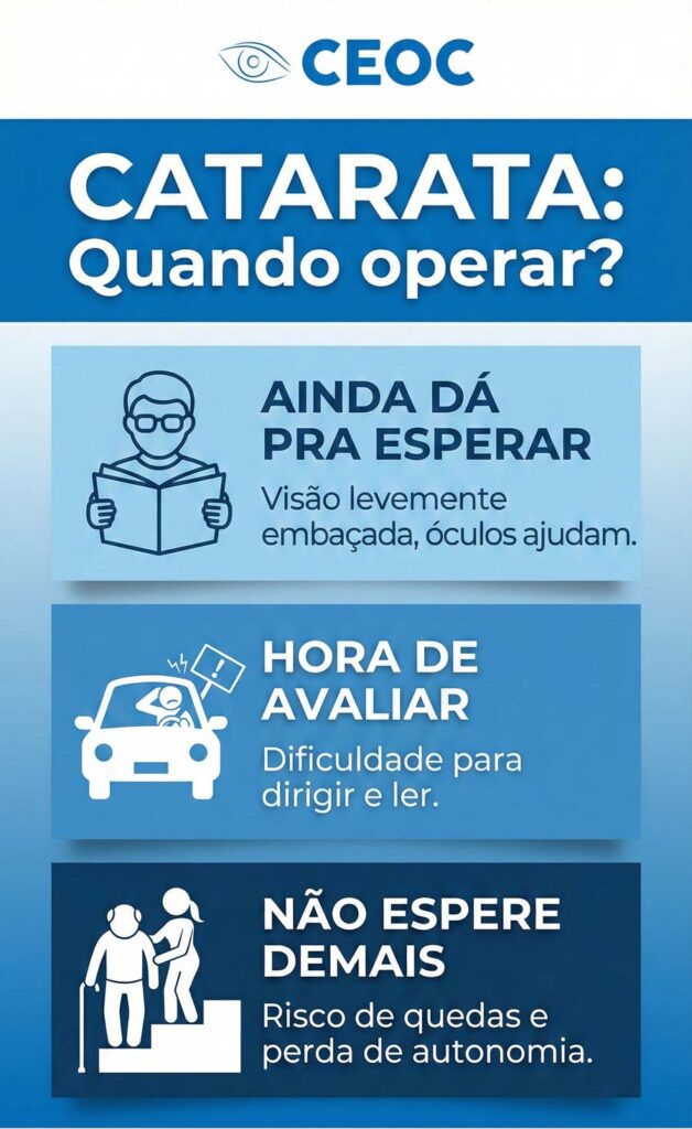 O ponto central não é apenas “ter catarata”, mas o quanto ela está interferindo na vida da pessoa.
